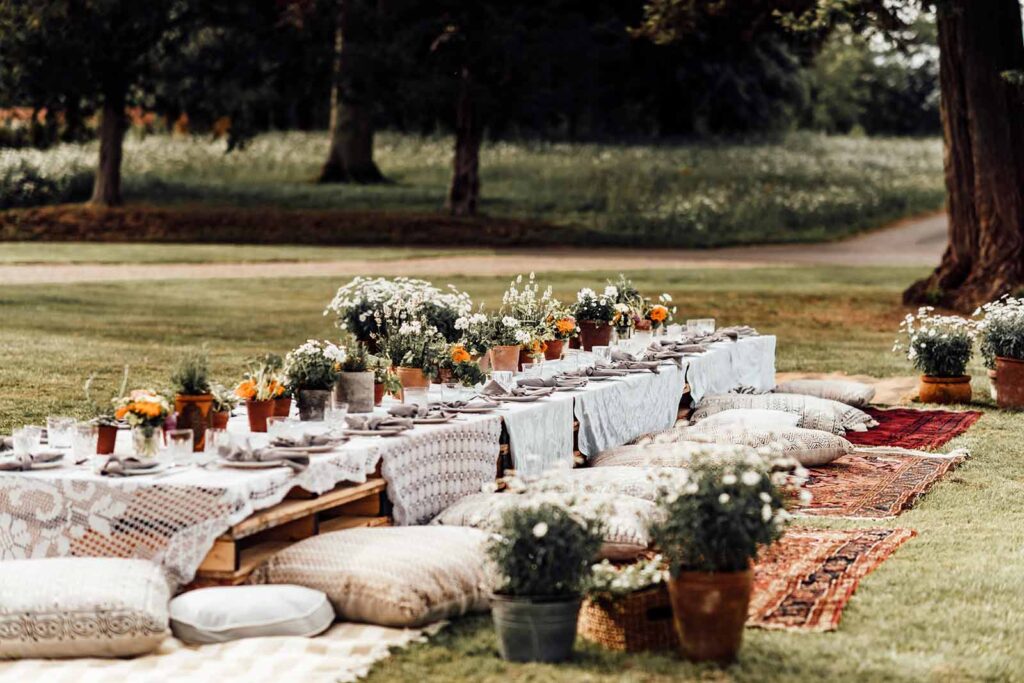 Tegemist on põllupulmaga- seega riietu nii, et Sul on mugav ka maas istuda- haara kaasa piknikutekid, padjad, vaibad, unenäopüüdjad, laternad ja muu, mis aitab ilu ja hubasust väljale tuua.